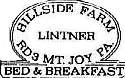607Eby Chiques Road | Welcome... Hillside FarmBed & Breakfast is a farm home in a peaceful rural setting featuringa pre-civil war farmhouse (an 1821 farmhouse), barn and other out buildings. Once a dairy farm,Hillside Farm Bed and Breakfast is still surrounded by one of the largestareas of farmland left in Lancaster County which guarantees a healthy measureof rest and relaxation. Half a mile down the road is one of the manyAmish farms that dot the area along with a one-room schoolhouse. If you wish,Gary can arrange for you to have dinner with an Amish familywith advance notice. Situatedwell off the main road, the two-acre grounds are convenient yet secludedenough for a "get away" retreat. The back of the house overlooks ChickiesCreek with a view of the mill dam and an old generator house. A full, all-you-can-eat country breakfast is served family-style every morning. Be sureto bring your appetite. Snacks are available all afternoon and evening. |